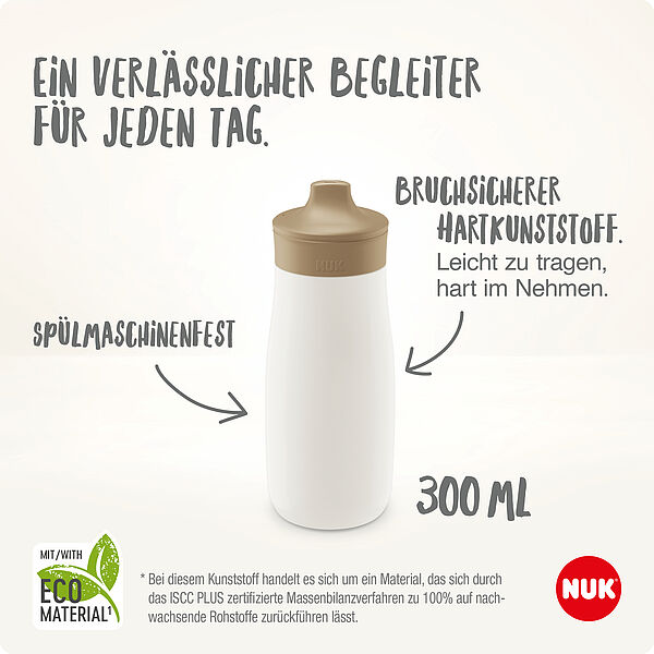¹ Bei diesem Kunststoff handelt es sich um ein Material, das sich durch das ISCC PLUS zertifizierte Massenbilanzverfahren zu 100% auf nachwachsende Rohstoffe zurückführen lässt. Genauere Informationen zum verwendeten nachhaltigen Kunststoff in diesen Produkten: Sustainability Declaration Mini-Me