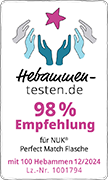 100 erfahrene Hebammen haben unsere NUK Perfect Match Flasche über einen Zeitraum von vier Wochen getestet. Dabei wurden sowohl die Meinungen der Hebammen selbst als auch die ihrer betreuten Schwangeren, Stillenden, Mütter und Eltern eingeholt. Das Ergebnis kann sich sehen lassen: 98 % der Hebammen empfehlen die NUK Perfect Match Flasche.***