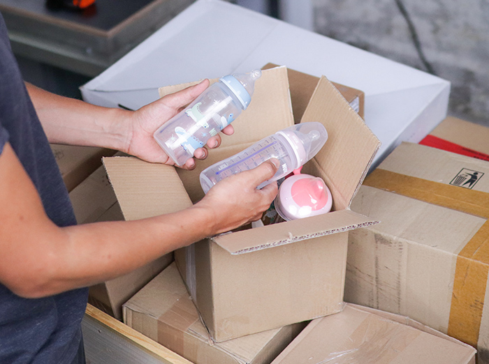 Schicke uns kostenlos ein Paket von zuhause aus zu oder füttere eine der Sammelboxen in Kitas oder im Handel.