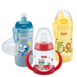 Trinklernbecher & -flaschen gibt es bei uns in vielen verschiedenen Größen und Formen, sodass für jeden das passende Modell dabei ist. Egal ob mit Schnabelaufsatz oder 360-Grad-Trinkrand, unsere NUK Trinklernbecher und -flaschen erleichtern deinen Elternalltag nachhaltig und unterstützen dein Kind dabei, neue Fähigkeiten zu entwickeln. Den Grad der Unterstützung, den dein Liebling beim Trinken aus einem NUK Becher braucht, kannst du dabei ganz einfach selbst bestimmen: Die ergonomischen Griffe der Trinklernbecher sind gerade in der Anfangszeit ein nützliches Detail, um dein Baby im entsprechenden Tempo an das Trinken aus Tassen heranzuführen. Wer schon ohne Stützräder auskommt, kann sich am Trinken aus grifflosen Bechern zum Trinken lernen mit Trinkhalm versuchen.