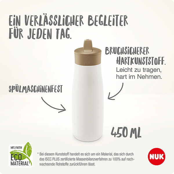 Endlich gibt es eine Trinkflasche, die all deine Erwartungen erfüllt. Sie versorgt dein Kind verlässlich mit Flüssigkeit und bietet noch so viel mehr: Schönes, minimalistisches Design, das nicht nur Kindern gefällt. Hochwertige, nachhaltige Materialien wie Edelstahl und Kunststoff aus natürlichen Rohstoffen.¹ Verschiedene innovative Trinkaufsätze. Verschiedene Füllmengen. Frei kombinierbar. So seid ihr bereit für jedes Abenteuer.