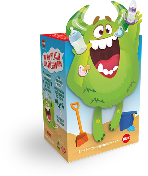 Aktuell werden die Produkte leider im Restmüll entsorgt und dann verbrannt. Das wollen wir verhindern und dem hochwertigen Plastik ein zweites Leben schenken, mit der Unterstützung unseres NUK Schnullermonsters.